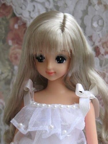 銀髪・裾カールのマリーンです。 キャッスルで購入しました。 とても可愛いのですが、せっかくの裾カールが崩れそうであまり触れないのが悲しいです。 ↓後ろ姿です。 既に少々髪がポヤポヤしています。 お着替えさせるのも細心の注意が必要です。 ドレスは市…