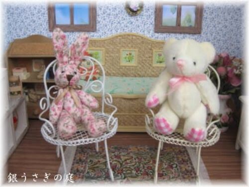 100円ショップ(ダ〇〇ー)で購入した椅子です。 向かって左側が白、右側がクリーム色です。 シリーズのテーブルがあったら良いのに!と思いましたが、 私が行ったお店では椅子しかありませんでした。 それでは、早速、お人形さんに座って貰いましょう。 ま…