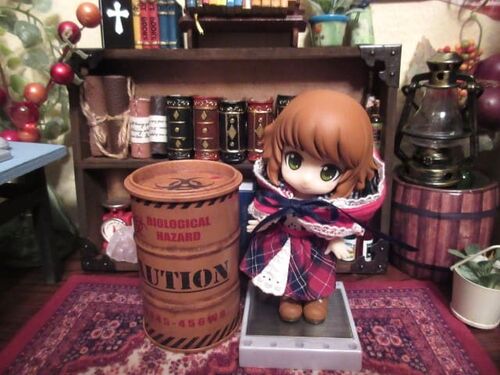 セリアのミニチュアドラム缶(蓋つき)を購入しました。 三種類あり、一番危なそうな文字のドラム缶です。 かなり以前から販売されていたので今更感がありますが… ドールハウスの右隅にはワイン樽を置き、その上にランタンを置いていました。 今回ワイン樽を…